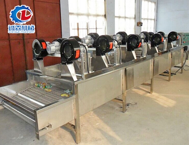3、风干机实现连续作业,只需将清洗后的产品放入输送网带,经风干机产生的气流经喷嘴喷射而出,吹干风温为常温,风干机有效保护物料本身的色泽和品质。